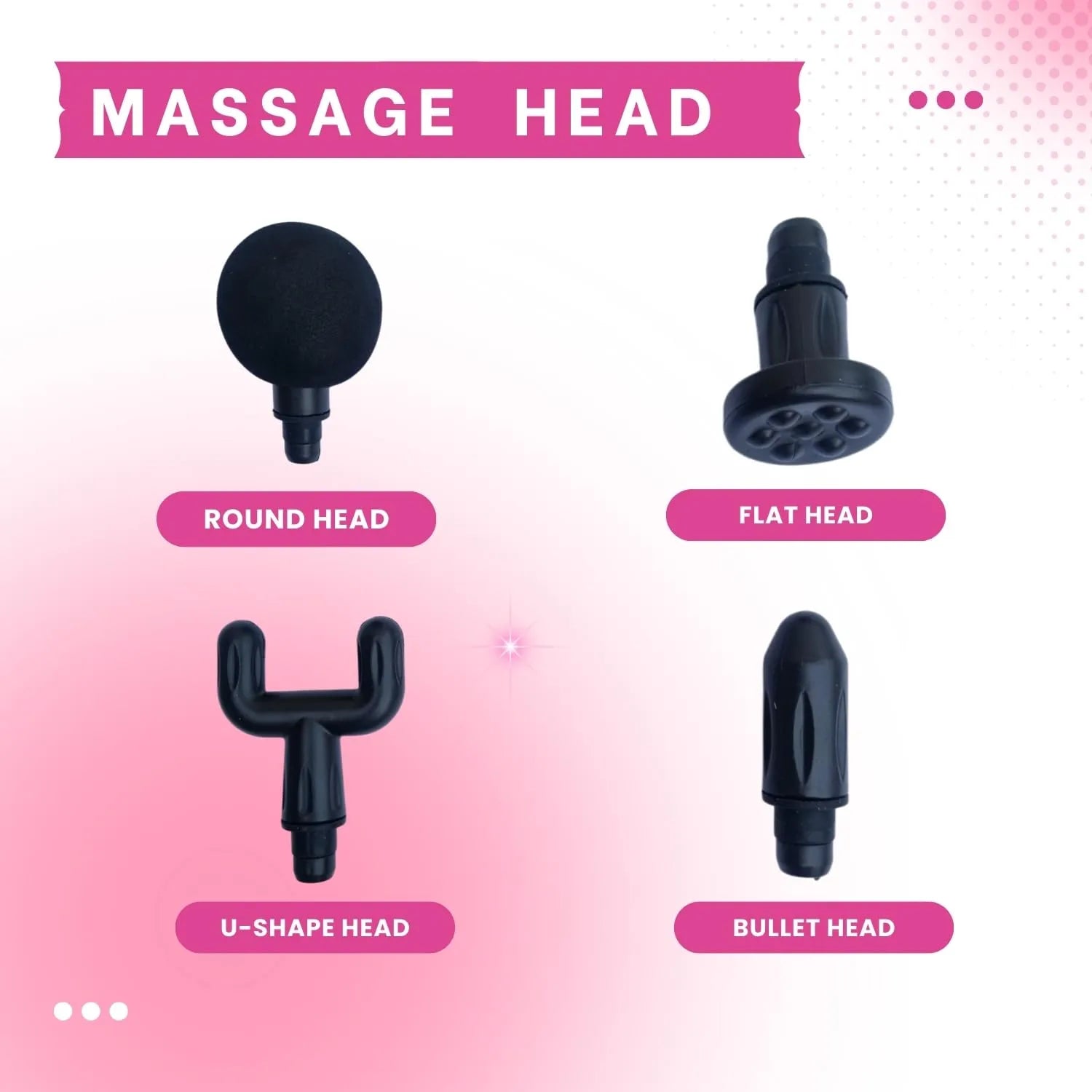 ✅ Customizable Relief – Features 6 speed settings and 4 massage heads (Round, Bullet, Flat, Fork) for targeted muscle relief on shoulders, back, legs, and joints.