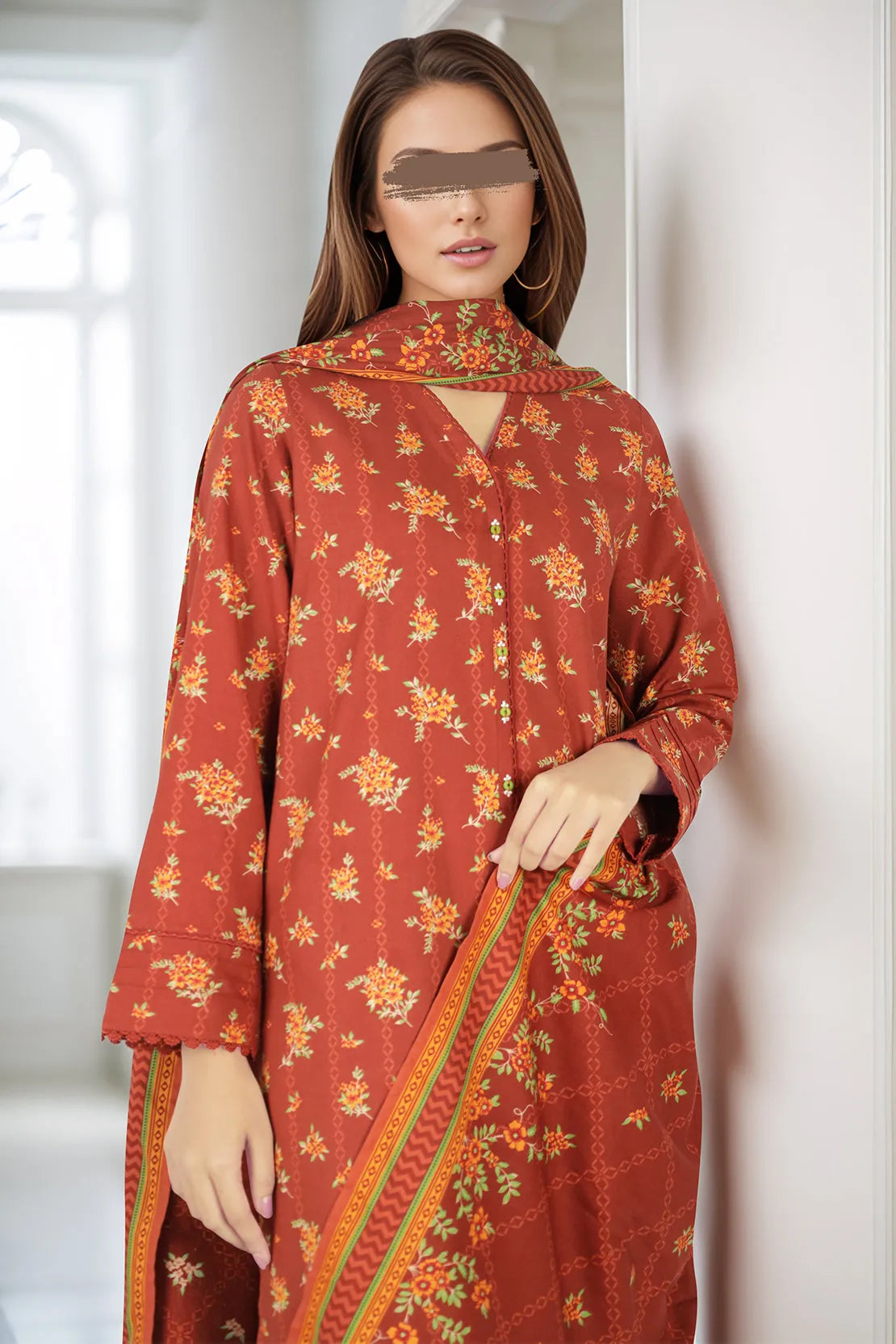 Elevate your style with this unstitched printed cotton viscose 3-piece set from Saya.pk. The set includes a printed cotton viscose shirt, matching trouser, and a dupatta, offering you a complete and fashionable look. The soft cotton viscose fabric ensures comfort while providing a stylish appearance for both casual and semi-formal occasions.