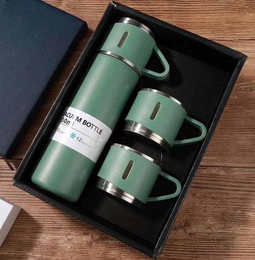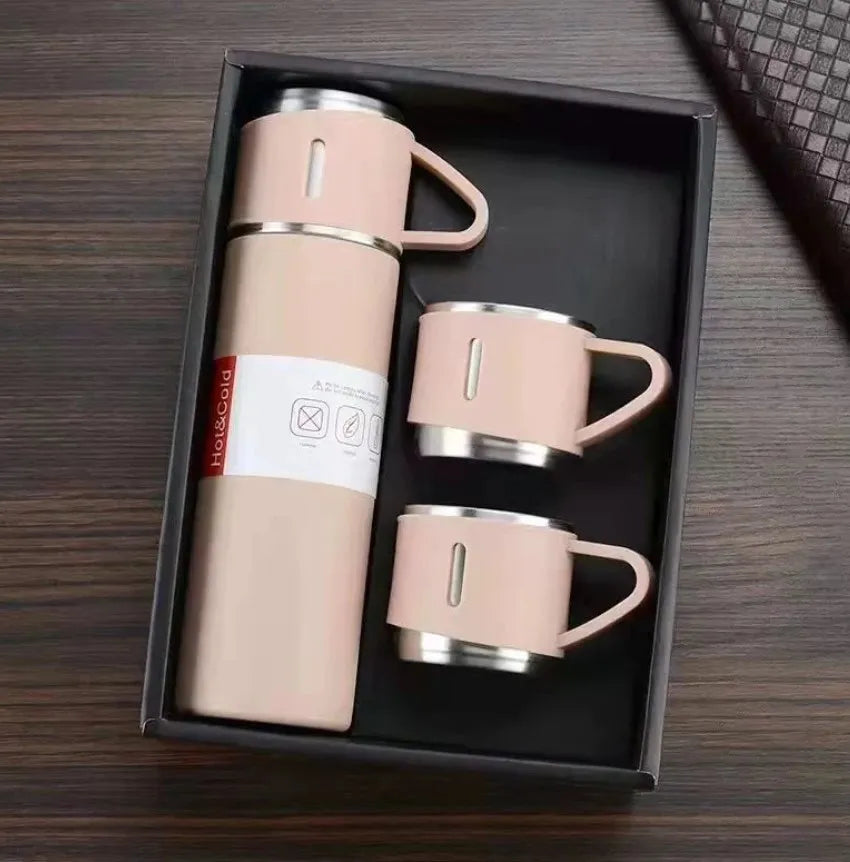 Stainless Steel Vacuum Insulated Thermos 500ml Water Bottle Insulated Hot And Cold Vacuum Flask Set with Silicone Handle and Insulated Lid Set With 2 Stainless Steel Cups
